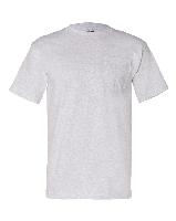 6.1 oz., pre-shrunk 100% cotton. Dark Ash is 90/10 cotton/polyester. Left chest pocket. Shoulder-to-shoulder taping. Double-needle stitched sleeves and bottom hem. USA-made.